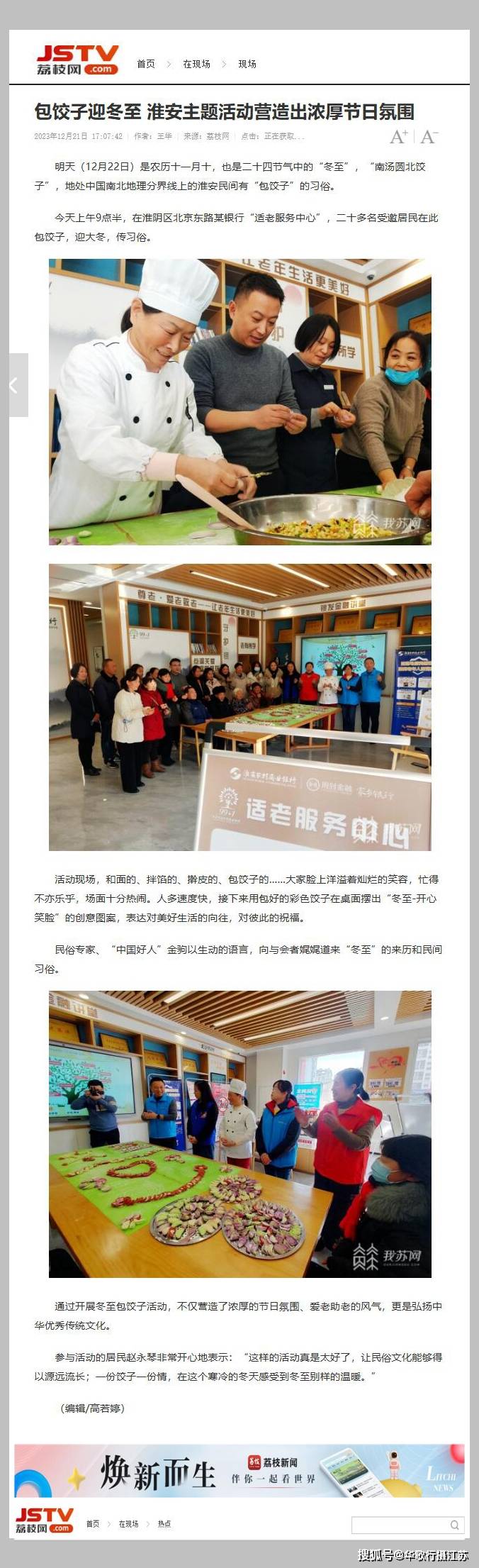 【搜狐網▪王華攝影報道】江蘇省淮安農村商業銀行邀請部分居民開展“包餃子 連情誼 冬至暖人心”活動,以迎接即將到來的冬至節氣。