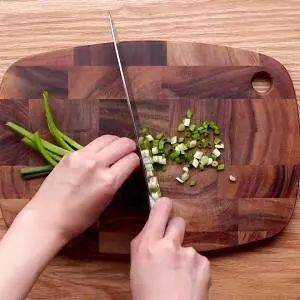 2、將小蔥清洗幹凈瀝幹水分,切成蔥花備用。
