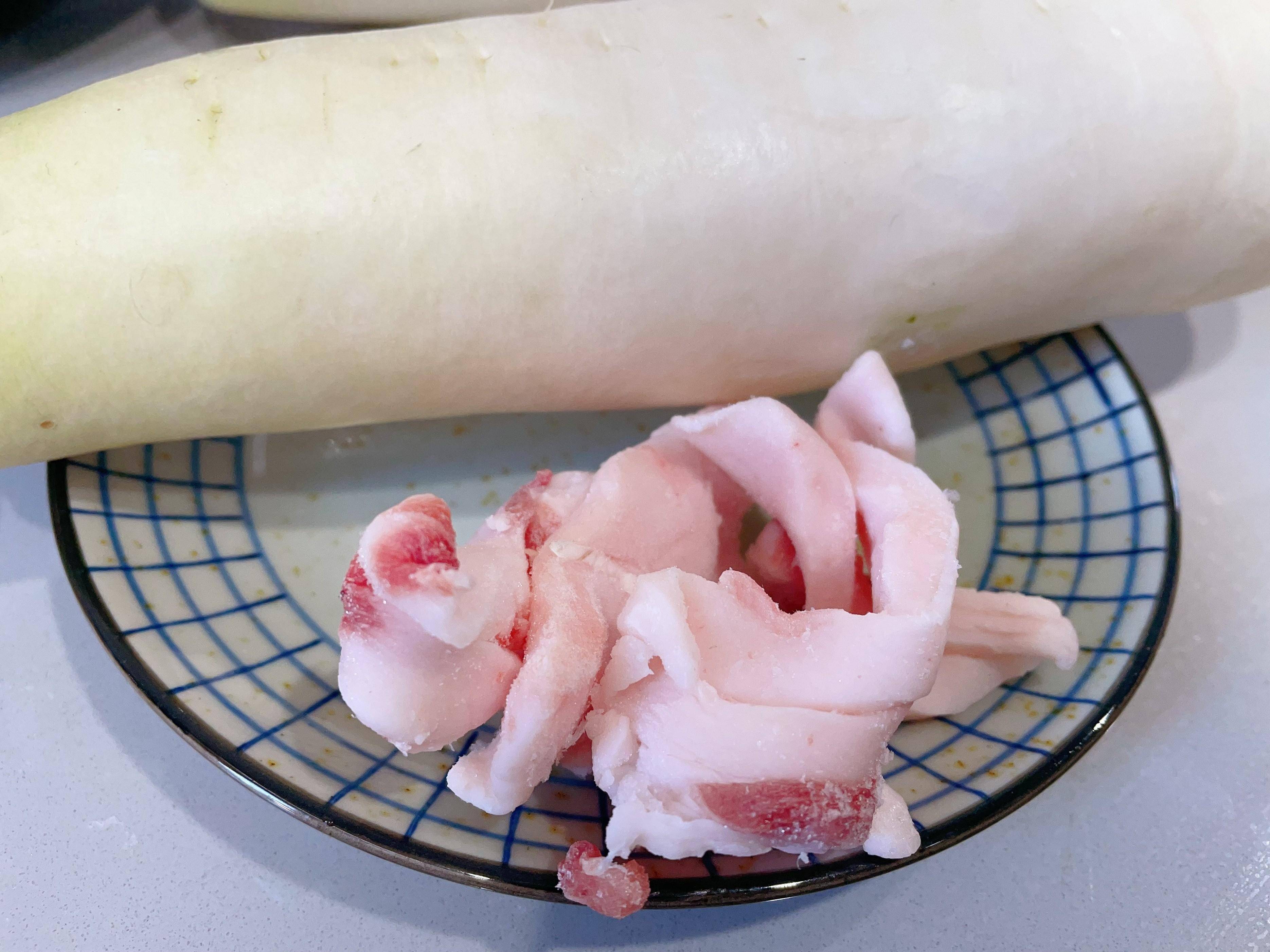 所需食材:白蘿卜,大肥肉,大蒜,小蔥/蒜葉,鹽,醬油,糖,醋,火鍋底料,油;