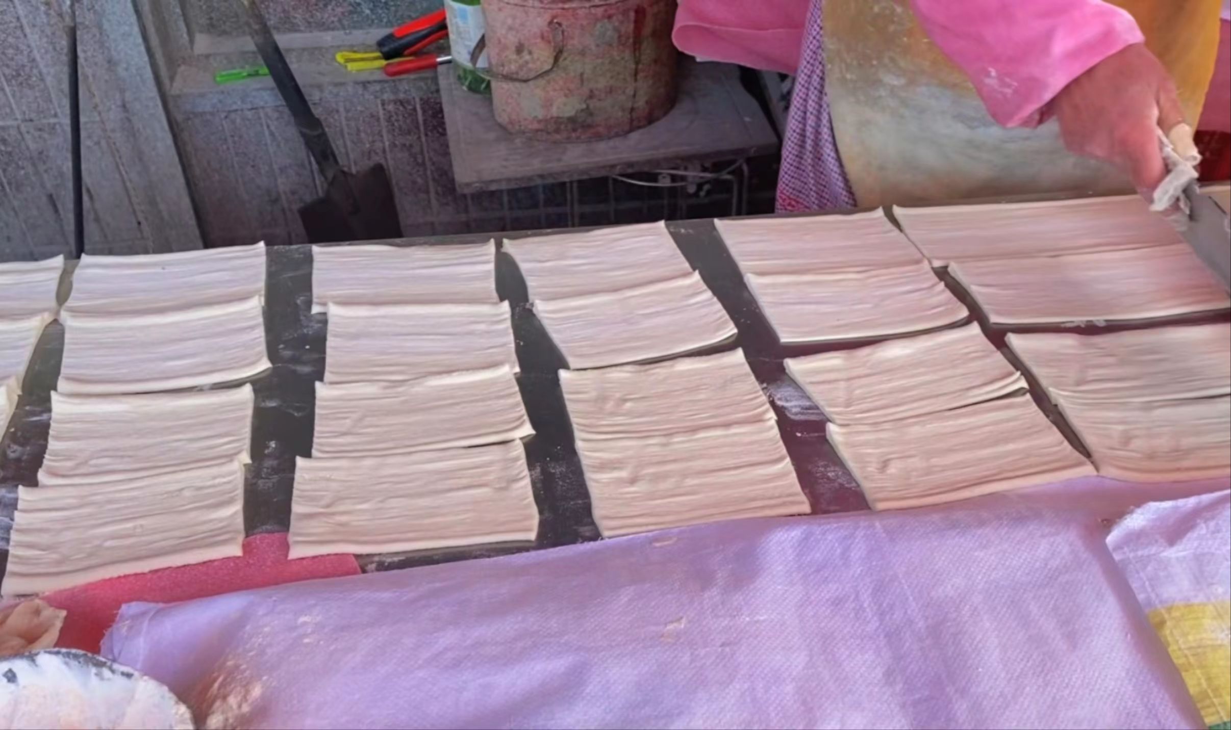 “顏集朝牌”為純手工制作,以大而出名,一般六小塊合成一大塊,俗稱一“簾”“朝牌”。要做出色香味俱全的“朝牌”,要求師傅必須技術嫻熟,在和面、搟面時掌握好分寸,有經驗的老師傅們更是總結出瞭兩套口訣。