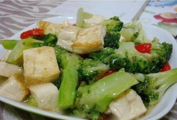 材料:西蘭花、豆腐(咸豆腐,不是軟豆腐)