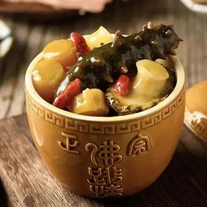 佛跳墻又名福壽全,是福建省福州市的一道特色名菜。名裡帶“全”,體現在食材多樣——通常選用鮑魚、海參等十幾種食材。一壇佛跳墻,凝聚精工細活,烹調工序比較復雜,操作難度大。食材多樣、制作標準繁瑣一度將佛跳墻“關在墻內”,甚至在福州享用,也得提前預定。