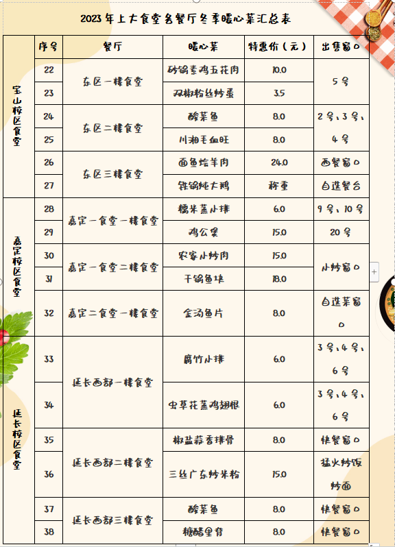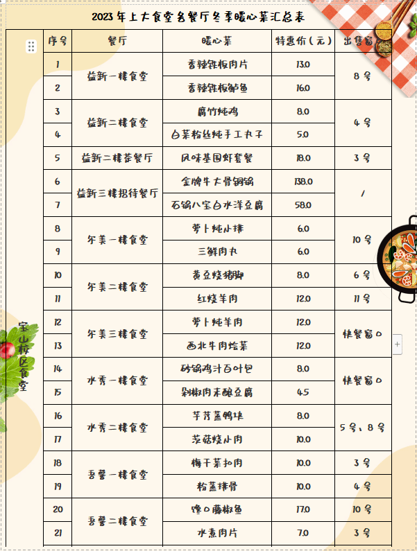 2023上大食堂各餐廳暖心菜匯總