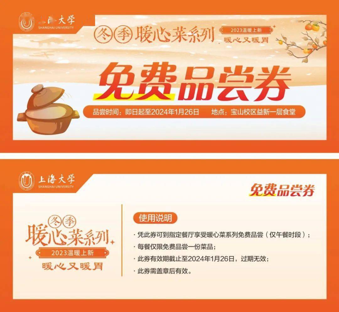 今日“大雪”,上海大學食堂又推出瞭2023冬季系列暖心菜,快來跟著小編打卡吧。