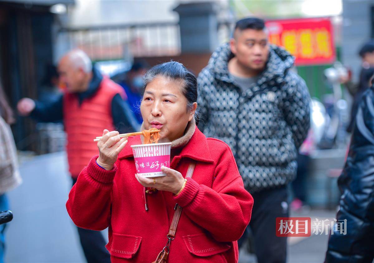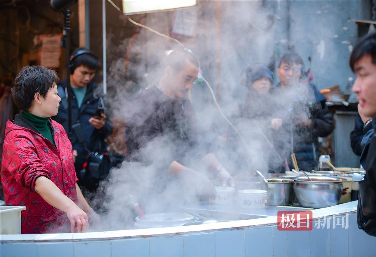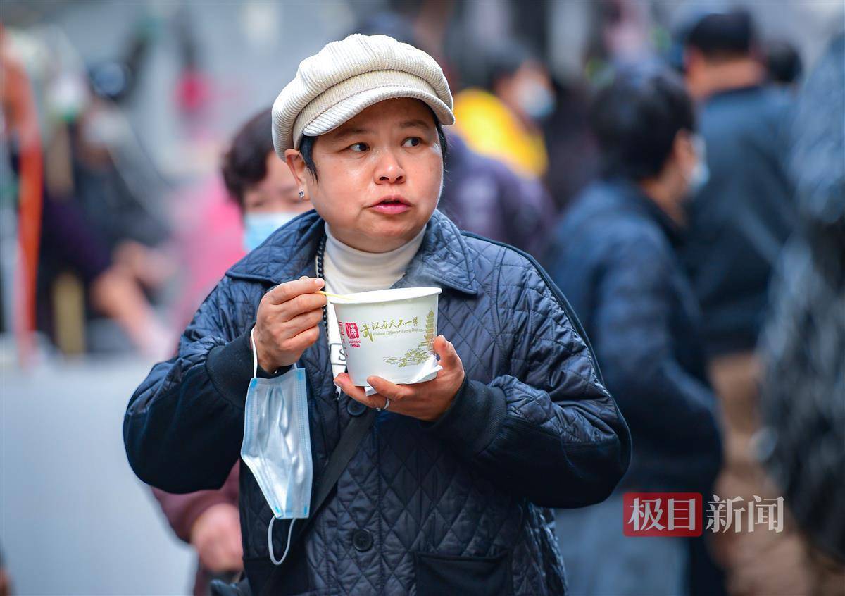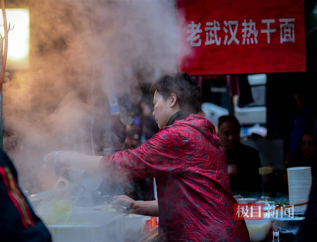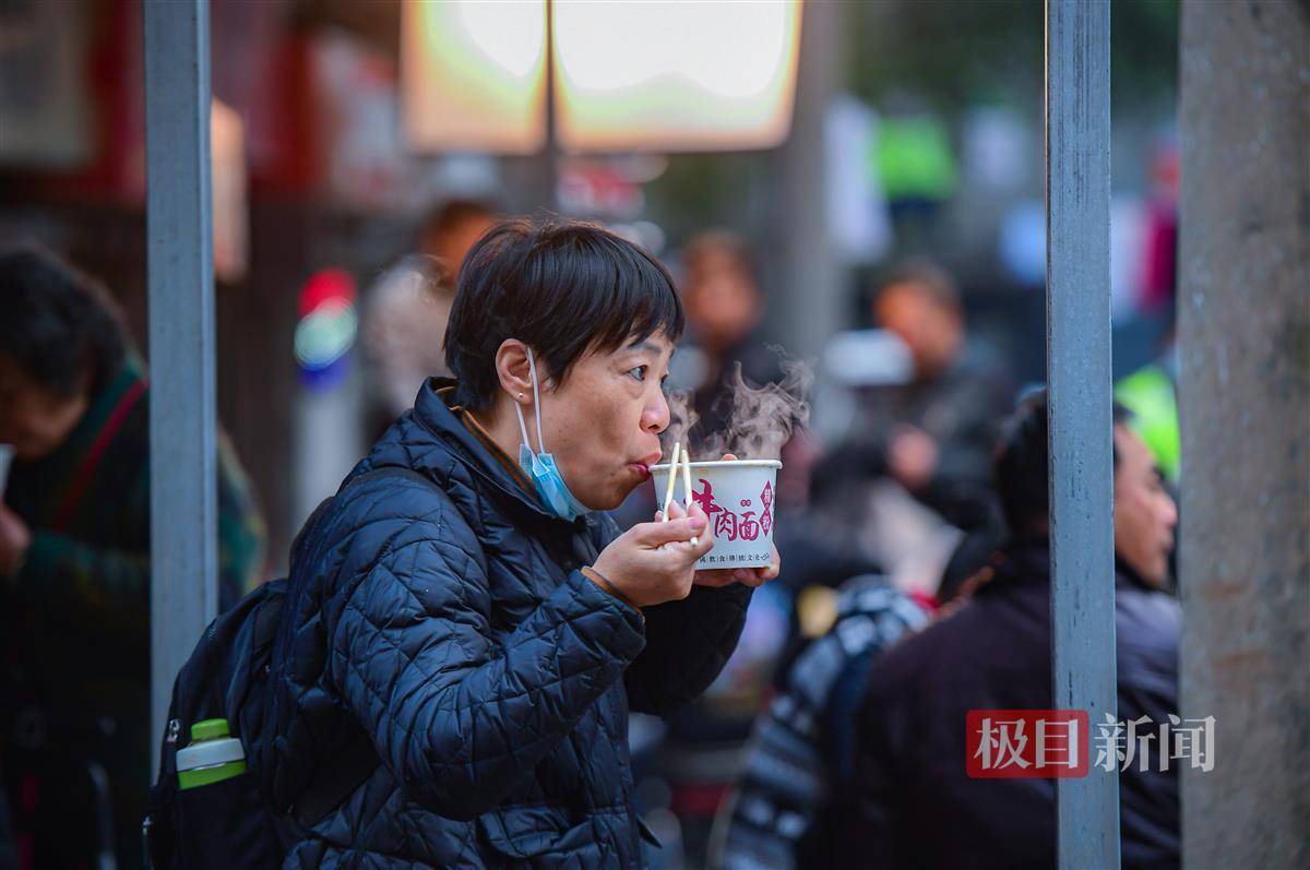 12月8日,武漢漢陽西大街,熱氣升騰,食客絡繹不絕,本地“土著”市民一大早就前來排隊購買。這條街道的早餐種類繁多,涵蓋瞭熱幹面、豆皮、餛飩、米粑、面窩等各類傳統小吃,這裡的早點美味又實惠是出瞭名的。