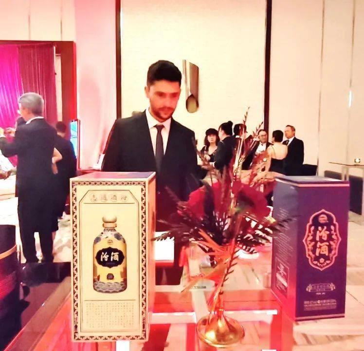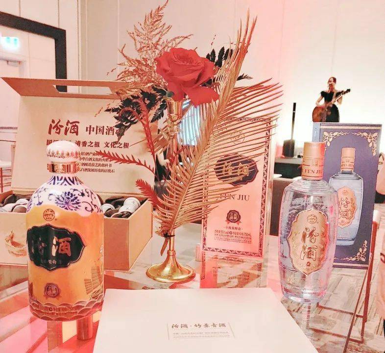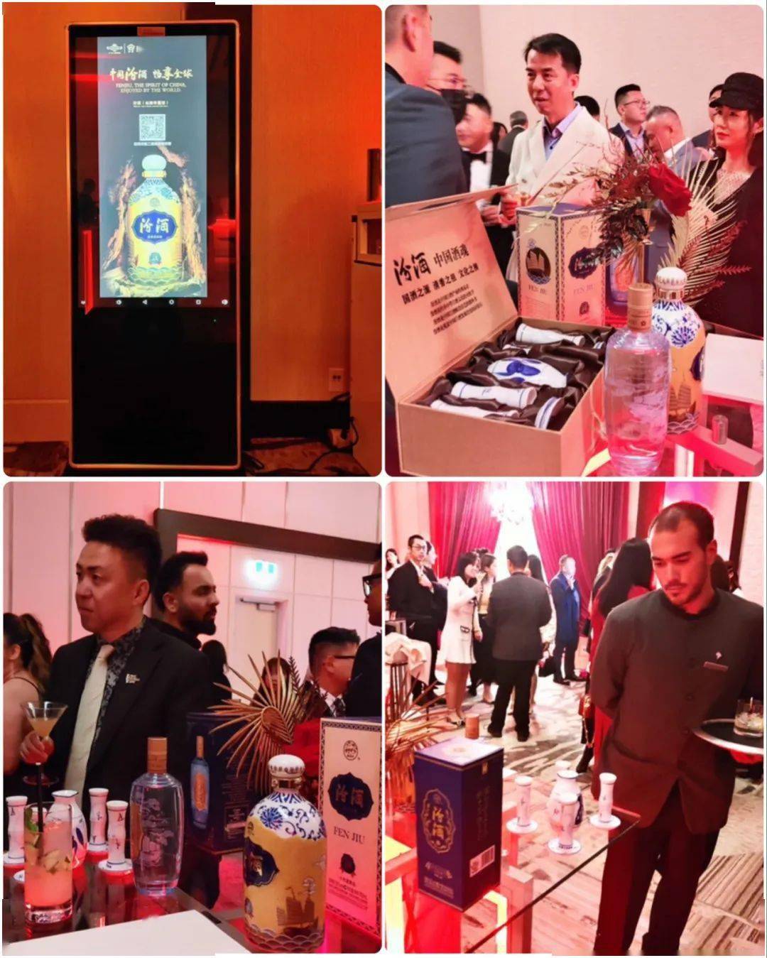 晚宴伊始,大會安排這兩款汾酒在VIP貴賓廳中進行拍賣前的展示預覽,在展覽過程中,與會各族裔嘉賓紛紛被這兩款汾酒精致的包裝所吸引,駐足仔細打量產品,翻閱桌面上擺放的產品介紹,並且向汾酒推介員咨詢瞭解汾酒的種類和歷史。