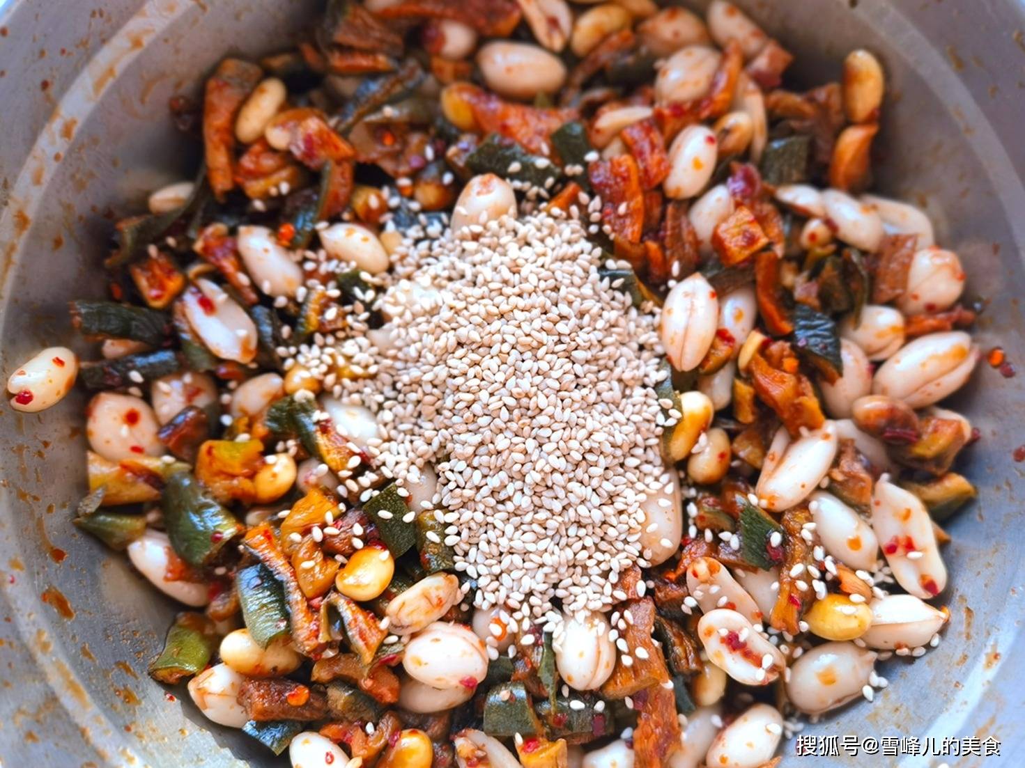 第七步:加入適量的白芝麻充分拌勻,這樣就可以儲存瞭。
