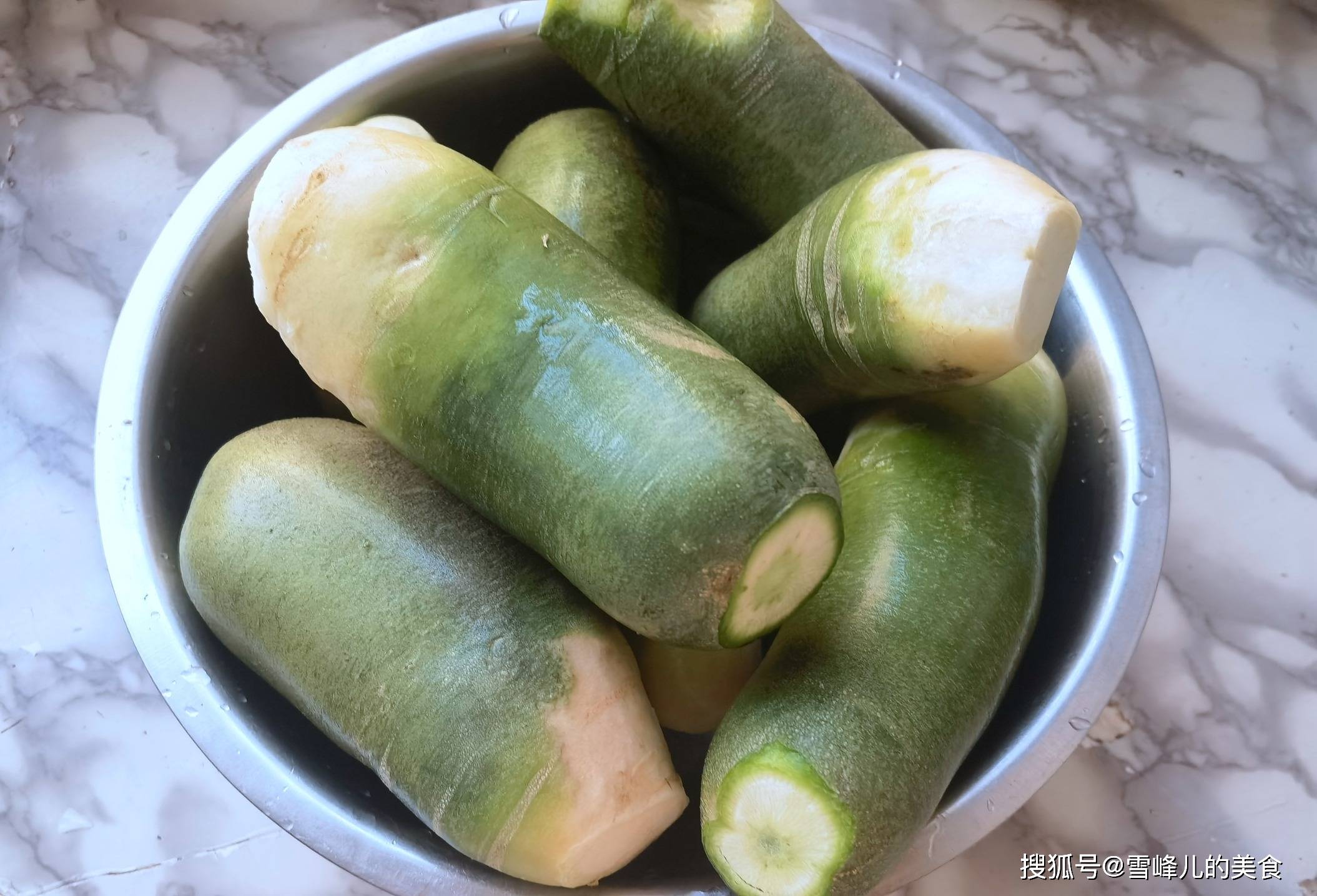 第一步:青蘿卜洗凈備用,蘿卜的品種很多,從外表來看有白蘿卜、青蘿卜、心裡美,水蘿卜等等。在北方主要吃青蘿卜,青蘿卜水分較白蘿卜要少,辣味也比白蘿卜辣一些,做蘿卜幹我們選擇青蘿卜最好。