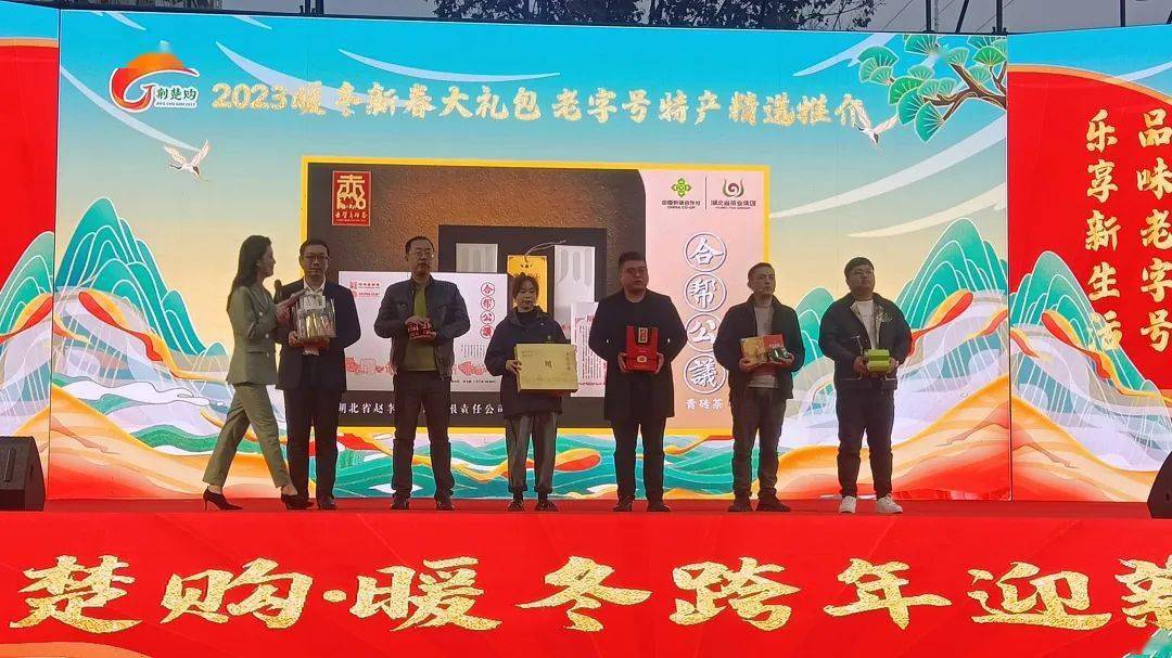 在黃岡“品味老字號樂享新生活”的活動上,趙李橋茶廠作為“中華老字號”企業代表,在臺上推介“川”字牌青磚茶、“火車頭”牌、“牌坊”牌米磚茶等產品,其中以合幫公議青磚茶,由人類非遺保護項目“趙李橋磚茶制作技藝”第五代代表性傳承團隊主導研發而成,其壓制原料精選2013年份陳化老料為主、以非遺傳統川字青磚茶精制加工而成。在寒冷的冬日,一杯青磚茶,溫暖整個冬天。
