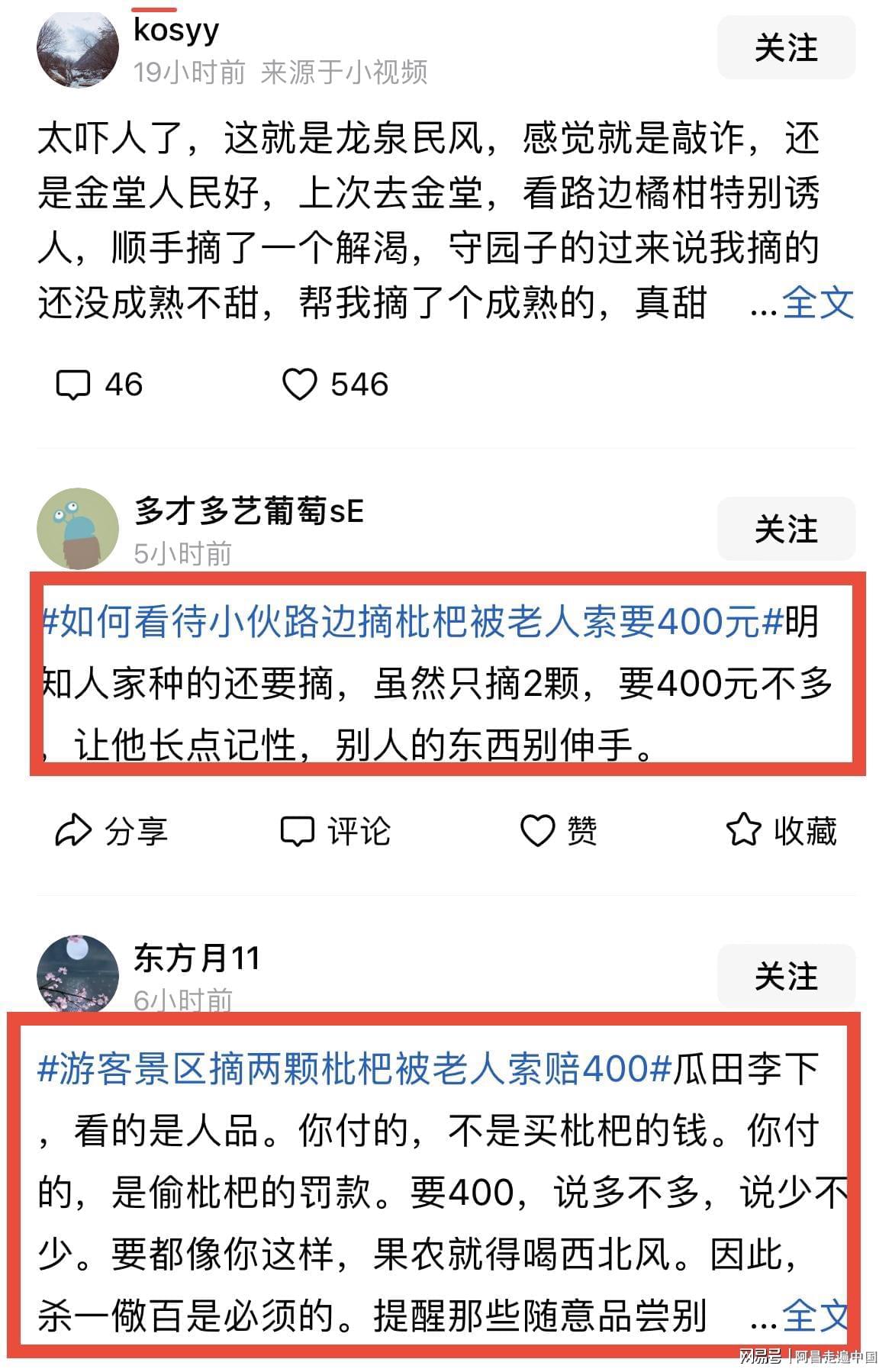 到一个地方旅游,必须要尊重当地入乡随俗,没有得到他人允许,不要轻易私拿别人东西,这个两个枇杷索赔400元,让我想起了2023年河北涞水县,两个核桃向游客索赔3000元的事情,这也是一个活灵灵的教训,五一假期给广大游客提个醒,万一遇到不讲理游客往地上一躺,讹诈你咋办呢。