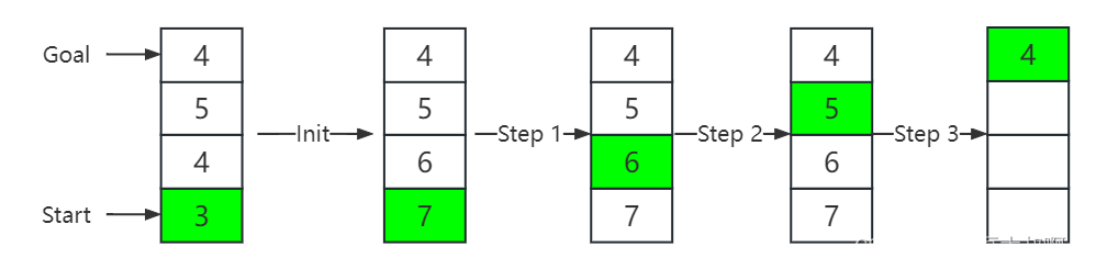 使用LRTA*算法的例子如图2所示,每个步骤的细节见下文。