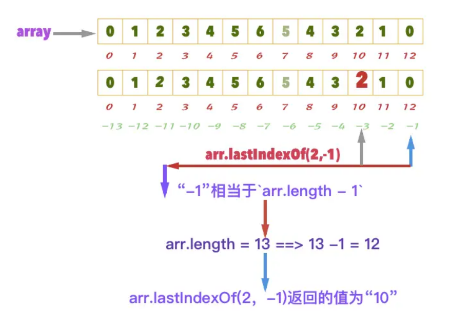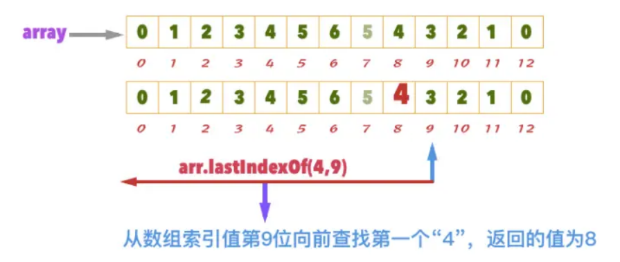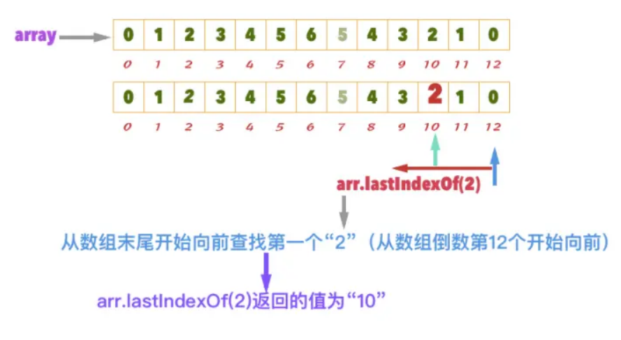 与indexOf()刚好相反,从一个数组中末尾向前查找数组项,并返回数组项在数组中的索引值。不存在,返回-1.