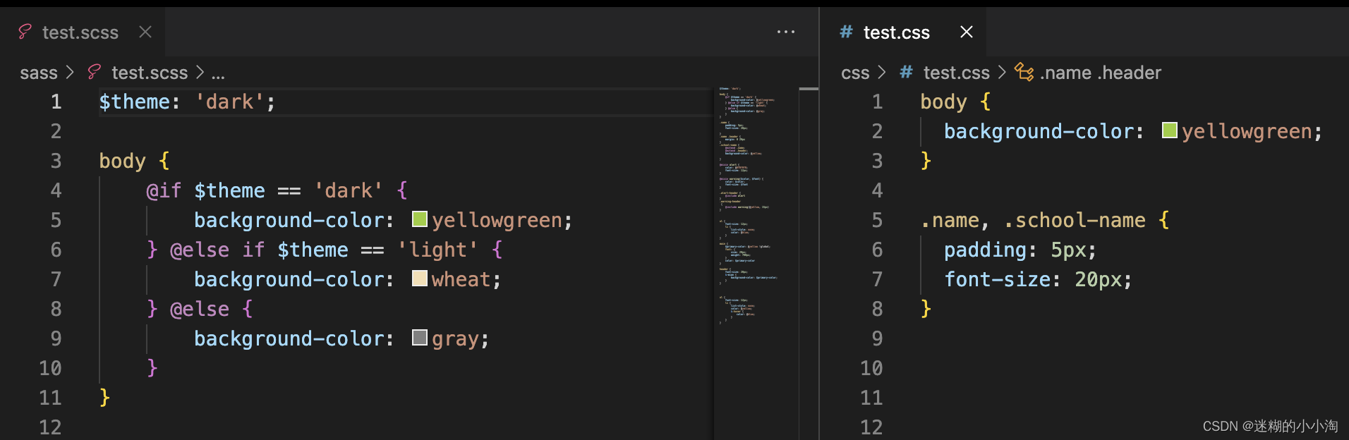 它支持两种语法格式,scss(Sassy css)与最早的sass格式(缩进格式),前者以.scss作为文件扩展名,较为常用;后者以.sass作为文件扩展名,使用“缩进”代替“花括号”表示属性属于某个选择器,用“换行”代替“分号”分隔属性,本篇讲解将以较为常用的第一种方式配合expanded排版方式作为讲解~