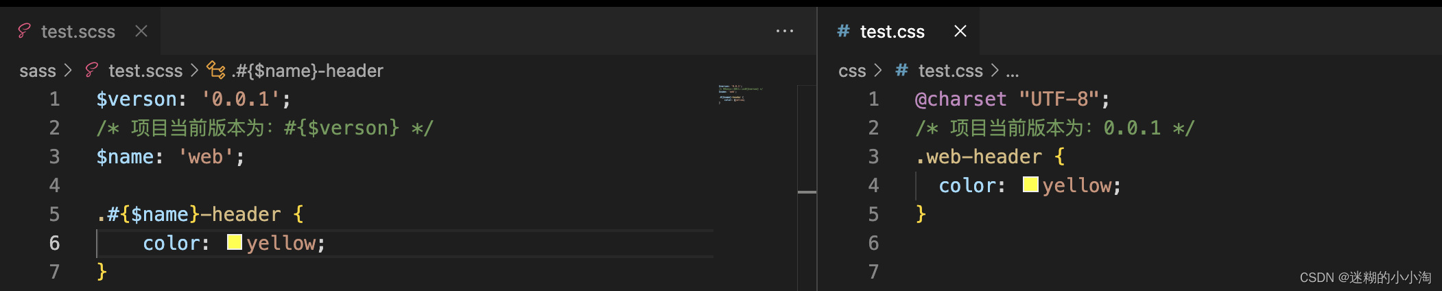 变量以$开头,赋值方法与css属性写法相同,使用时直接调用即可: