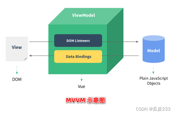 MVVM 是 vue 实现数据驱动视图和双向数据绑定的核心原理。它把每个 HTML 页面都拆分成了如下三个部分: