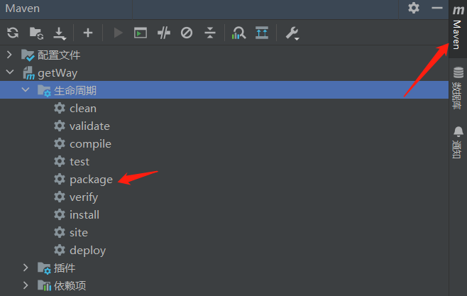 点击右边框框的maven找到要打包的程序双击点击package。如图: