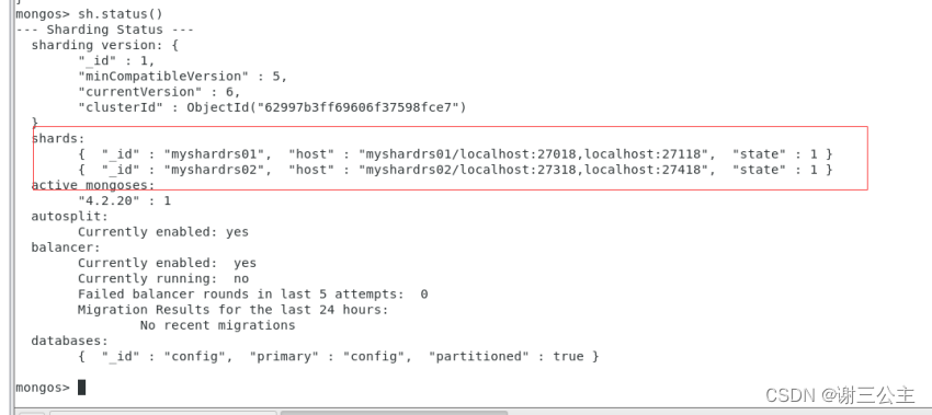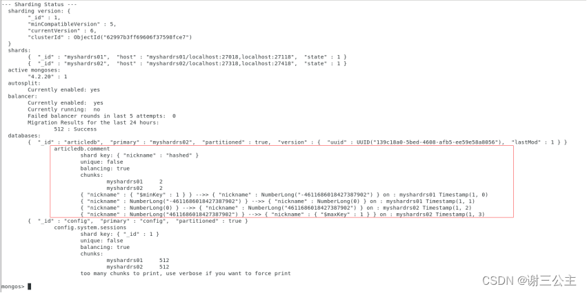 分片的安全认证与副本集的安全认证基本一致,详细操作在实验报告三。
