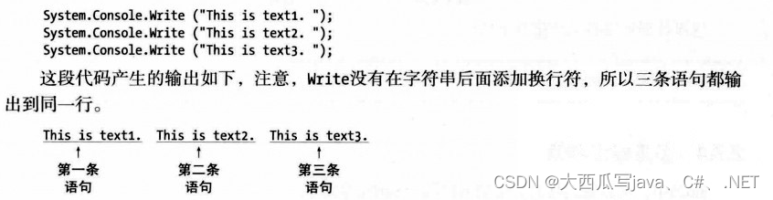 列如,如果使用先前的代码,用WriteLine替换掉Write,输出就会分隔在多行