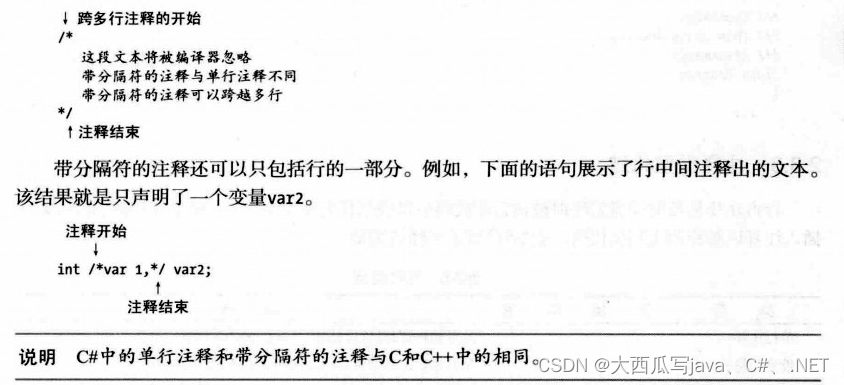 列如,如下代码展示了一个跨多行的带分隔符的注释。