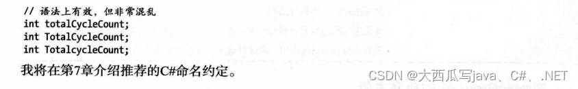 举个例子,在下面的代码片段中,变量的声明都是有效的,并声明了不同的整型变量。但是使用如此相似的名称会使代码更容易出错更加难调式,后续需要调试代码的人会很不爽。