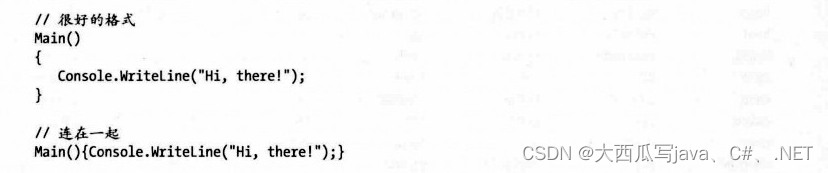 每个C#程序必须有一个带有Main方法(函数)。在先前所示的SimpleProgram程序中,他被声明在Program类中。