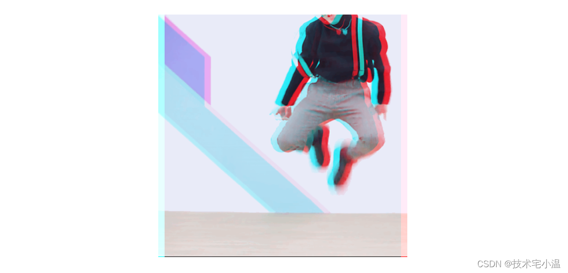 实现原理: 给两张同样的图片,叠加上 青色#0ff 和 红色#f00,并且错开一定的距离,两张图都要加上 background-blend-mode: lighten,其中一张再加上 mix-blend-mode: darken;