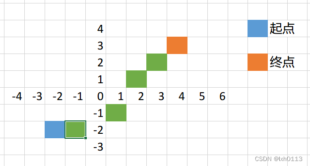 比如上面就是这个样子,会在-1,-1的位置,无论我们怎么走,都是不能走到的,因为那个位置不在起点左边,起点只能往左边走。它往左边走的那个位置必须是能够斜上往上走的。