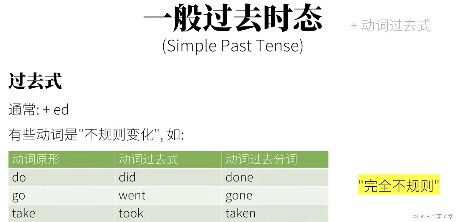 请注意,千万不要把动词的过去式和之前现在完成时态中的提到的过去分词弄混淆,它们俩不是一会事。