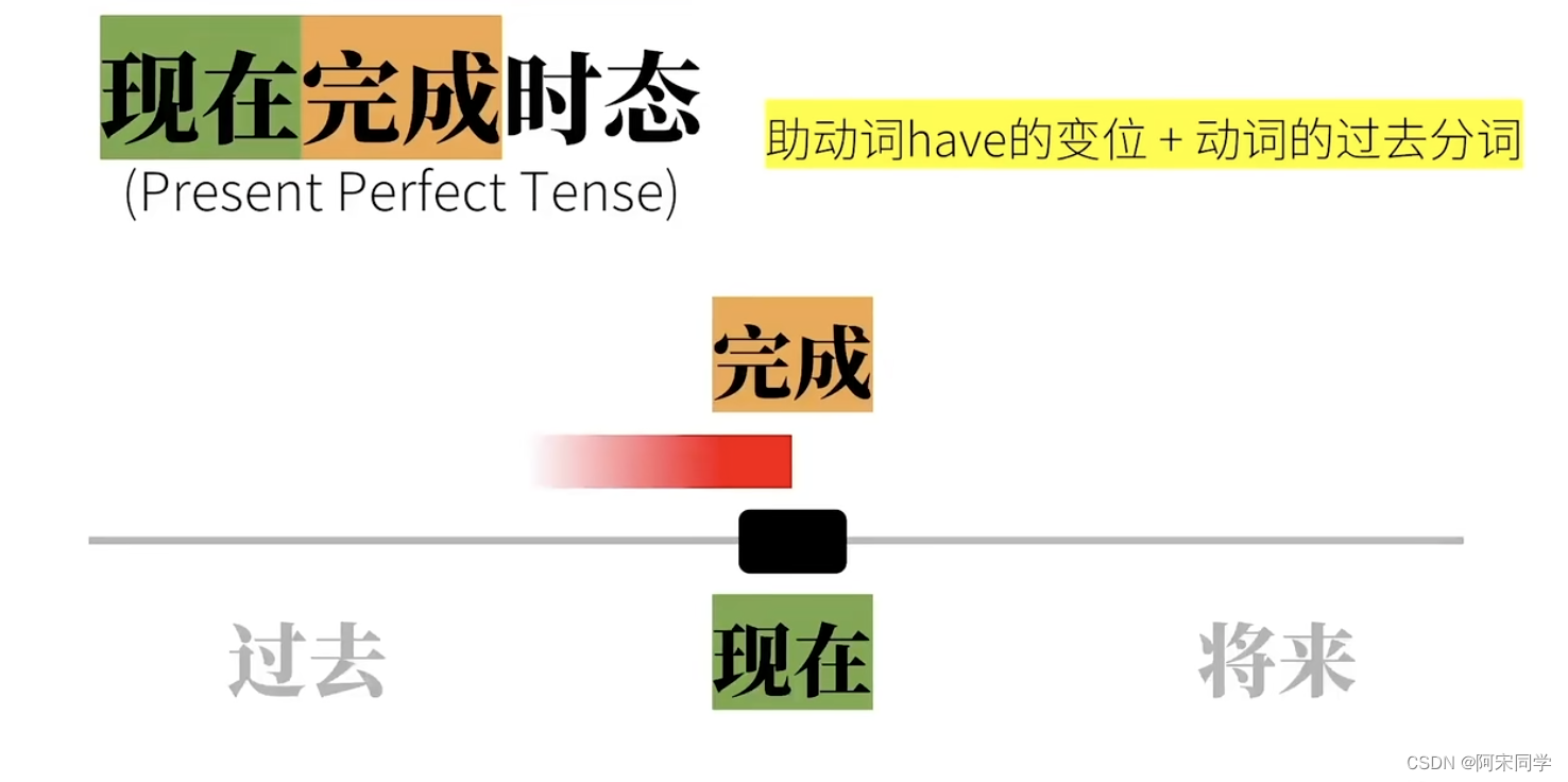 注意:完成态的重点在于动作状态完成了,而并没有指出动作具体发生的时间。因为不管在哪种动作时间里,完成状态并不直接说明动作的具体开始时间这个要特别注意!