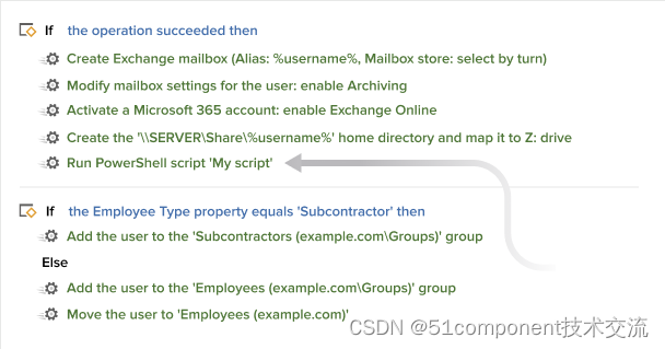 Adaxes为本地AD、Azure AD、Exchange和Microsoft 365提供基于规则的自动化。您可以使用自定义if/else条件创建工作流,这些条件将在目录中的某些事件之前或之后自动执行。