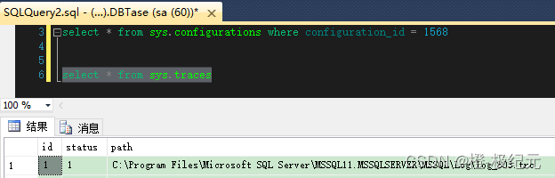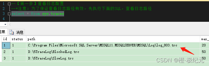 *注意:为了保证查看日志路径有效,先执行下面的SQL,查看日志路径