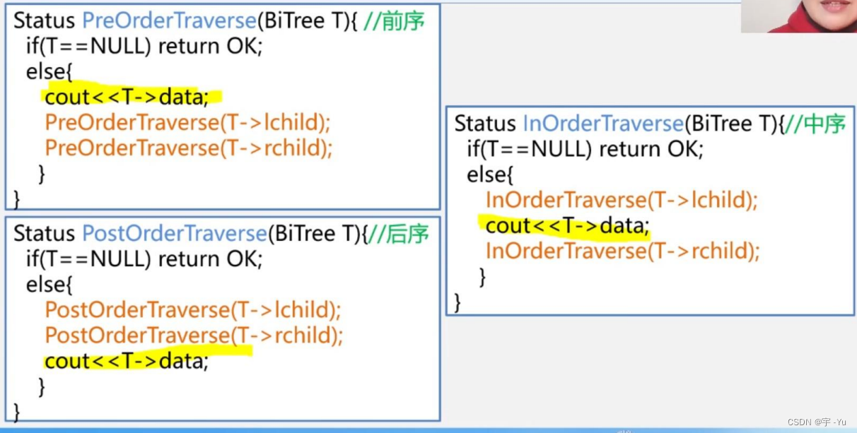 }//注意Pre函数必须要写在遍历函数前面Status PreOrderTraverse(BiTree T)