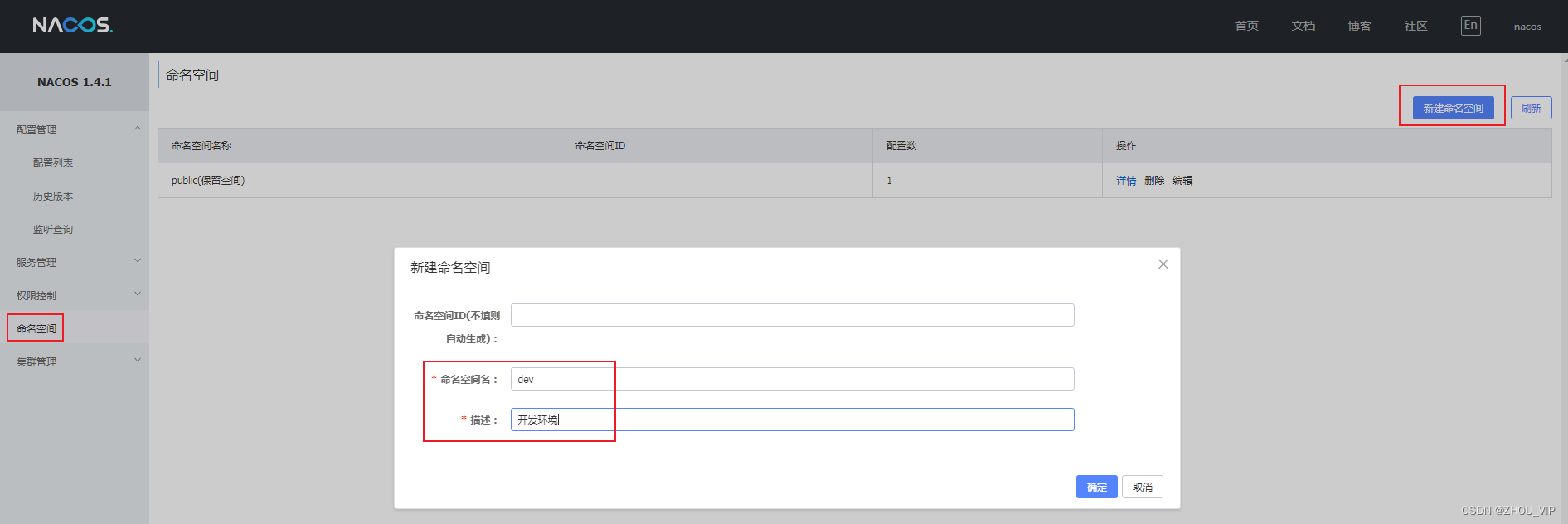 这个命名空间ID来源于我们在第一步所创建的命名空间